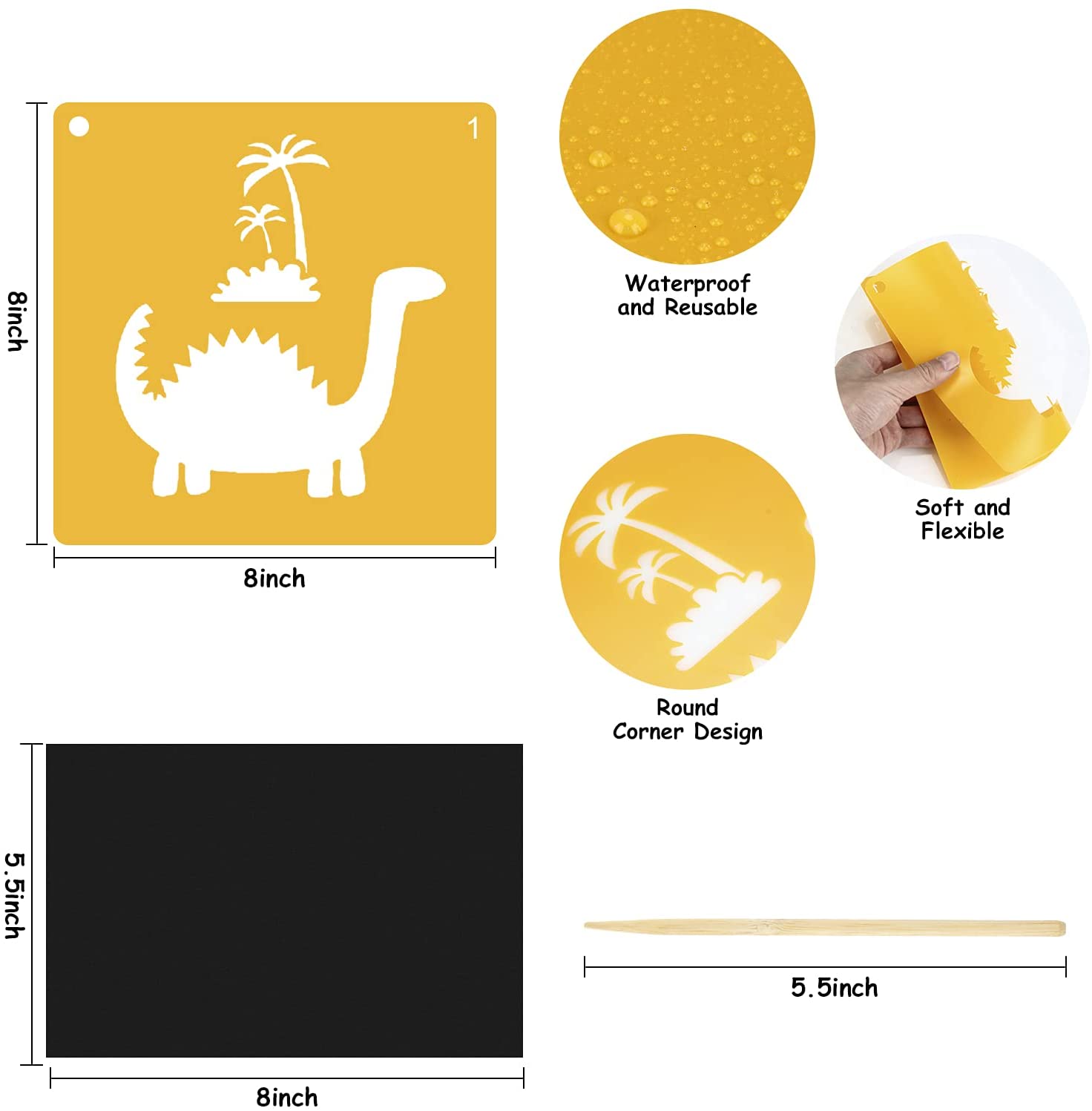 ☞[HIGH AUALITY PET MATERIAL]: Sidewalk chalk stencils, made of high-quality Eco-friendly PET, not easy to break, with smooth edges, lightweight and washable, so you can use them for long time, large stencils, easy to operate for your kids. ☞[20 FUN SHAPES]: Cool designed unisex stencils for kids of different shapes, include animal stencils, the sea-world, space, butterflies, lion, giraffe, dinosaurs, tree, flower stencils, racing cars and boats and special ballet, castle, birthday cake stencils. Arts and crafts with the kids was never so much fun! ☞[GREAT GIFT IDEA]: Colorful stencil design for kids is a vibrant treat. With beautiful shades of yellow, blue, red, and green. Drawing stencils is suitable for chalk stencils, painting, drawing, spray paint, book covers, cards and more, you can also draw wall stencils for painting large pattern. If you need a gift to give your child for the holidays, Christmas, that birthday, or as a reward, these stencils make a great present. ☞[SUITABLE FOR CHILDREN STENCIL SIZE]: 8 x 8 Inch stencils set, 5.5 x 8in scratch paper. DESIGN: No sharp edge, soft plastic designed, easy to drawing and also safe to kids. ☞[PACKAGE INCLUDES]: 20 Pieces colorful Kids stencils, 5 pcs scratch paper and 2 wooden Stylus, if a stencil is damaged or different from what you expected, feel free to contact us. We are committed to ensure you are fully satisfied with your purchase.