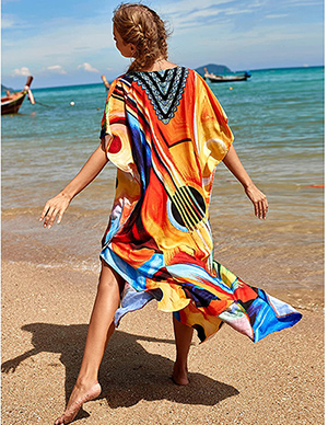 ♥ COMFORTABLE AND EASY MATCH: The Kaftan Maxi Dress can look good equally with a pair of high heels as with a pair of slippers. Unique design Classic cut, maxi-length. Modern style beach dress, makes women beach dress classic and comfortable. Tropical and sexy design, make you fashion and charming.