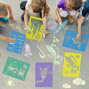 ☞ [REUSABLE AND STURDY]: Sidewalk chalk stencils, made of plastic material, not easy to break, with smooth edges, lightweight and washable, so you can use them for long time. ☞ [30 FUN SHAPES]: Cool designed unisex stencils for kids of different shapes, which can bring you more joy in various DIY project. Arts and crafts with the kids was never so much fun! ☞ [GREAT GIFT IDEA]: Our chalk stencils for kids outside are designed with colorful colors. Drawing stencils is suitable for chalk stencils, painting, drawing, spray paint, book covers, cards and more, you can also draw wall stencils for painting large pattern. If you need a gift to give your child for the holidays, Christmas, that birthday, or as a reward, these stencils make a great present. ☞ [SUITABLE FOR CHILDREN STENCIL SIZE]: 7 x 9.85 Inch stencils set. DESIGN: No sharp edge, soft plastic designed, easy to drawing and also safe to kids. ☞ [PACKAGE INCLUDES]: 30 Pieces colorful stencils, if a stencil is damaged or different from what you expected, feel free to contact us. We are committed to ensure you are fully satisfied with your purchase.